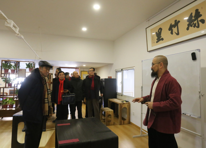 伊始,范磊陪同老领导、艺术家、会长们漫步园中,于移步换景间,领略这一方闹中取静的文人幽境。