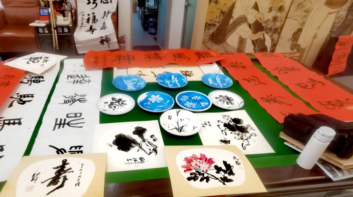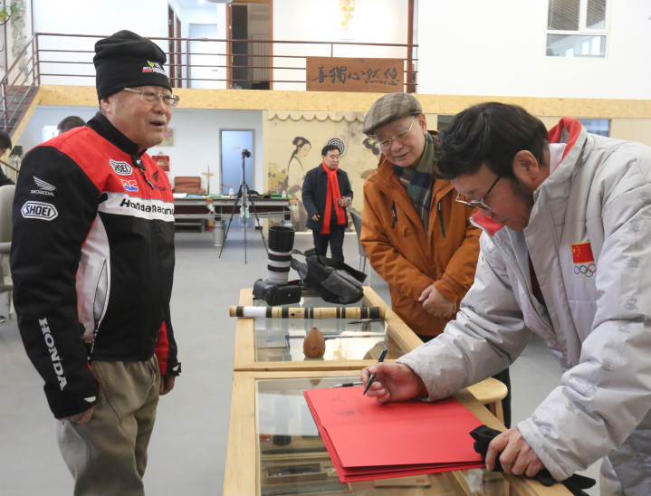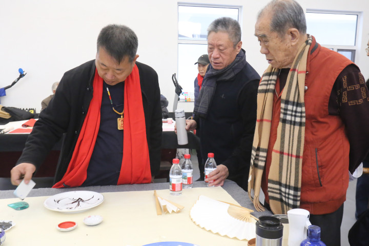 此外,著名篆刻家、书法家、省太行文化印社社长高爱华,著名军旅书画家刘由国、省体育局原新闻发言人、省全民健步走协会副主席、书法家罗一,省体育文化协会创始人、亚洲赛车王、著名书画家刘刚,省文化名人公益联盟创始人之一、省文化和旅游产业协会副会长、品牌推进专委会主任、著名书画家王昆,著名画家李凤梅,省海内外名人名企协会执行会长、省雄安诚信协会企业家专委会会长刘世芳,省雄安诚信协会企业家专委会常务副会长、唐山正瑞实业公司董事长、书法家郑瑞,策划人董继萍等亦欣然命笔,或书千古名句,或绘山河清音。著名橡胶画非遗传承人刘子军,在白盘子上眨眼间即创作完成(永久保存)书画的独特技艺,赢得宾朋们的盛赞。