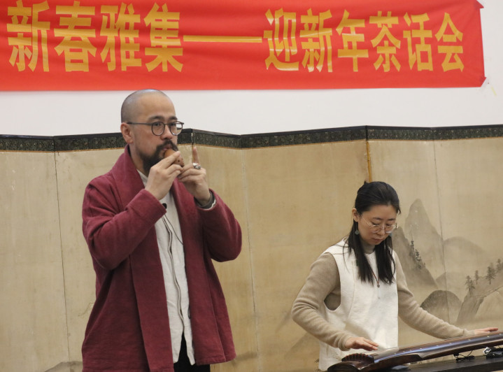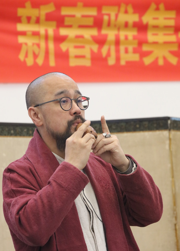 令人沉醉的环节,当属古琴、尺八与埙的现场和鸣。琴弦轻拨,温润之音如清泉流淌,拂过心弦;尺八之音,苍古辽远,宛若穿越千年尘烟、跨越时空的喟叹;埙声悠悠而起,低沉婉转如远古私语,三者相融相生,柔美相济。指尖流转间,古琴的清雅、尺八的旷远与埙的醇厚交织成韵,丝丝缕缕漫过雅室。值得一提的是,此次演奏的尺八,其技艺发源于石家庄临济寺,跨越千年时光,国内如今唯有曹昊一脉传承,而埙声的加入更添古韵,让这曲源自本土的唐音雅韵多了几分深沉与厚重,在场嘉宾无不屏息凝神,在丝竹与陶土的和鸣中完成了与千年文明的深情对话,沉浸于东方美学独有的空灵与深遂,魅力无穷。
