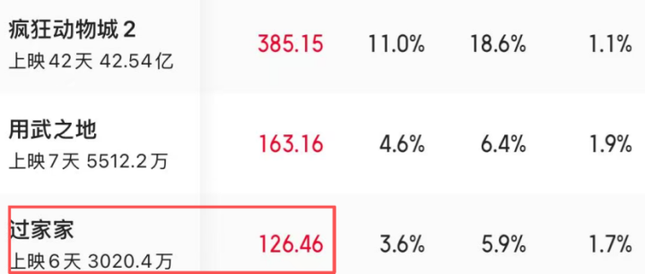今年元旦档,成龙主演的《过家家》上映,6天累计票房才3000万出头,日票房仅126万。