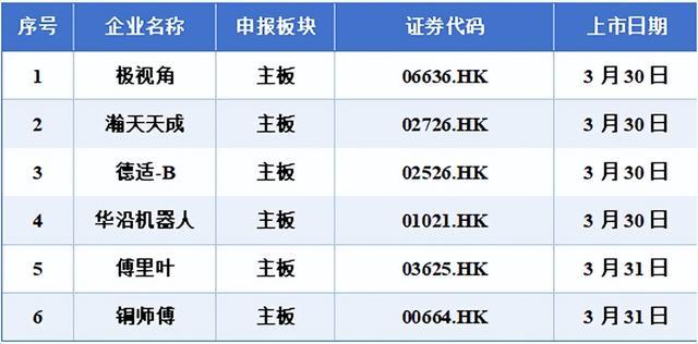 3月29日至4月4日期间,极视角、瀚天天成、德适-B、华沿机器人、傅里叶、铜师傅等6家企业挂牌上市。