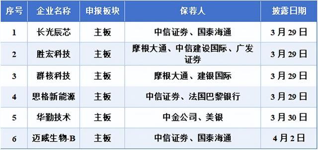 3月29日至4月4日期间,长光辰芯、胜宏科技、群核科技、思格新能源、华勤技术、迈威生物-B共6家公司通过聆讯。