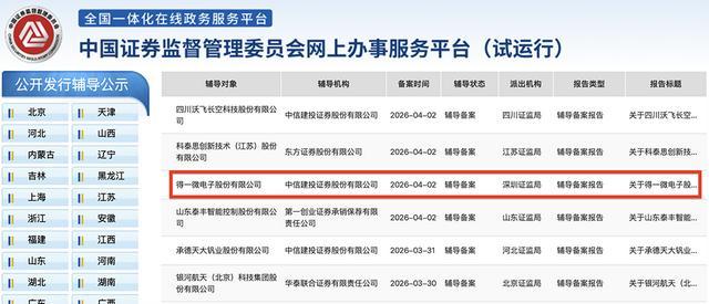 芯东西4月7日报道,4月2日,证监会官网披露,广东深圳AI存力芯片企业得一微在深圳证监局办理上市辅导备案登记,启动A股IPO进程,辅导机构是中信建投证券。