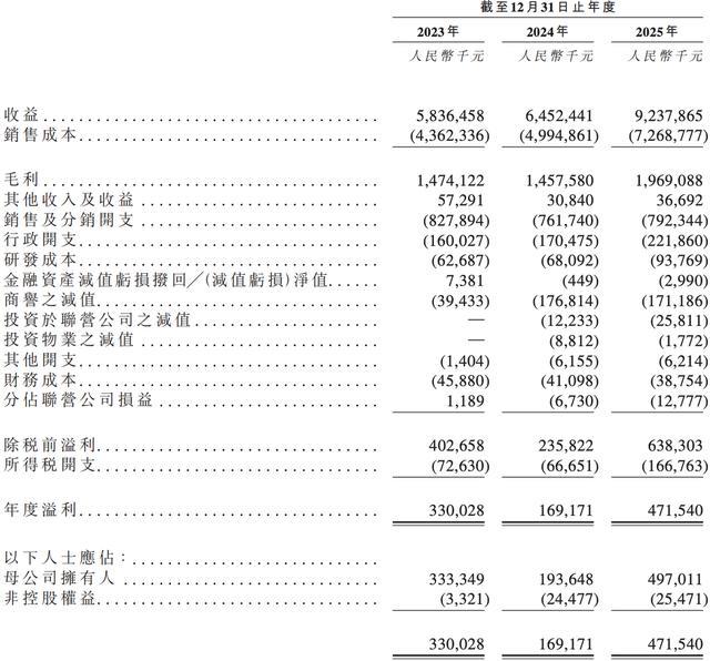 整体而言,潮宏基的业绩保持增长态势,尤其是2025年实现了飞跃。不过,该公司的利润水平却有所波动。2023年,该公司录得净利润3.31亿元,2024年减少至1.69亿元,2025年猛增至4.72亿元。